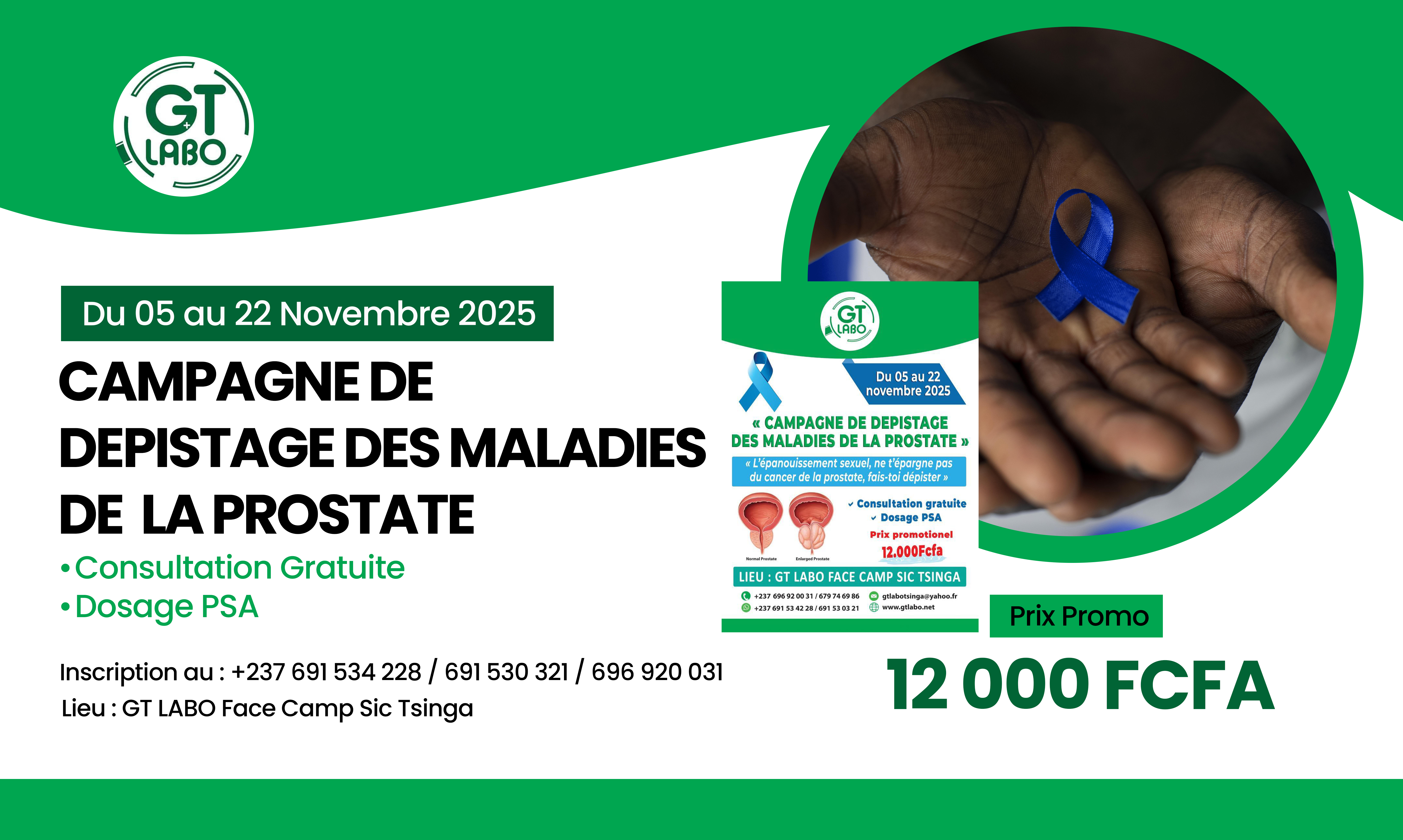 GT LABO c'est plus de 20 années d'expérience au service des populations camerounaises et étrangères, et un personnel constitué de médecins biologistes et de techniciens de haut niveau avec une expérience professionnelle de plus de 20 ans.
